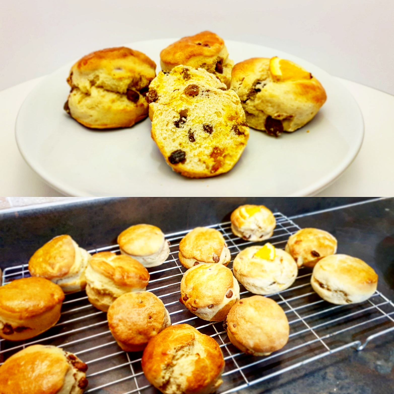 split dough in smaller portion and mix with spices and fruits or chocolate chips, roll approx. 1.5cm thick and cut 4cm round shapes